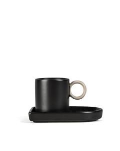 Porcelánový hrnek s talířkem NIKI, černý/šedý