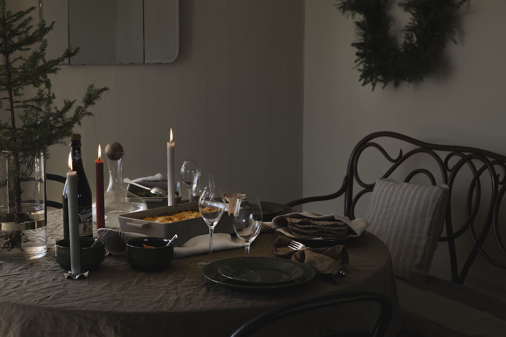 Keramická zapékací mísa Flora s charakteristickými Sagaform pruhy.