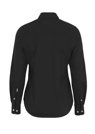 Košile z jemné keprové tkaniny s hladkým a měkkým povrchem je vyrobená z kvalitní certifikované Fairtrade bavlny. Dámská košile je vypasovaná dvěma záševky, díky kterým vynikne dámská silueta.