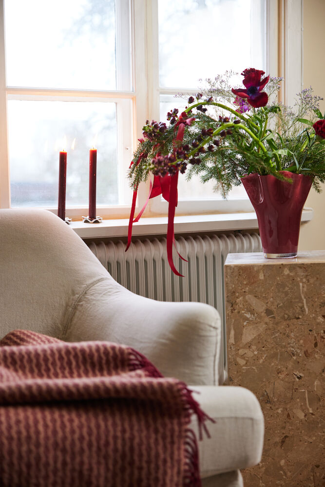 Ozdobná váza z ručně foukaného skla v barvě bordeaux. Organické tvary. Baleno v dárkové krabici. Design: Studio Sagaform.