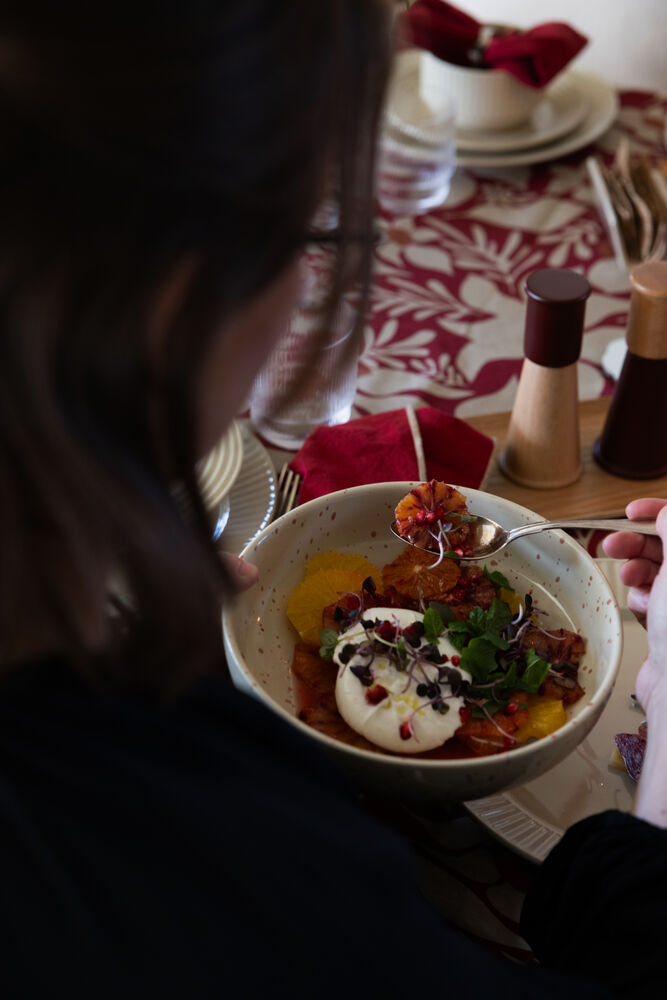 Mísa má béžový odstín s jemným vínově červeným vzorem kapek. Série se navíc krásně doplňuje s kolekcí Coffee & More. Každý kus DITTE je ručně vyrobený, proto se barva i povrch mohou mírně lišit – každý výrobek je originál.