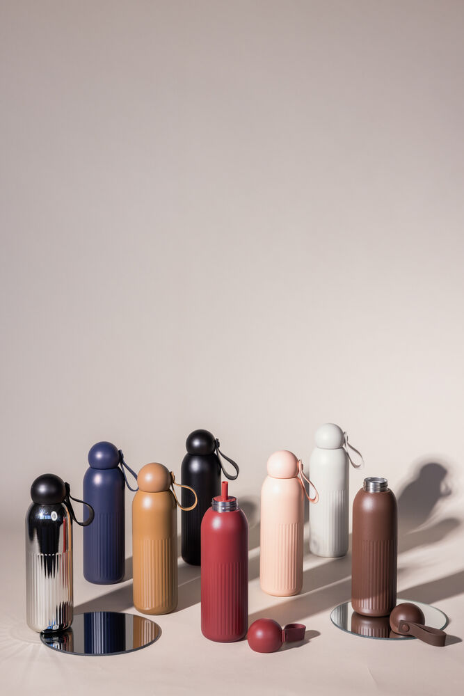 Termoska Tekla byla navržena s důrazem na styl, funkčnost a udržitelnost. Je vyrobena z recyklované nerezové oceli s dvojitou stěnou a vakuovou izolací, která v kombinaci s tenkou měděnou vrstvou udrží nápoje teplé až 12 hodin nebo chladné až 24 hodin.
