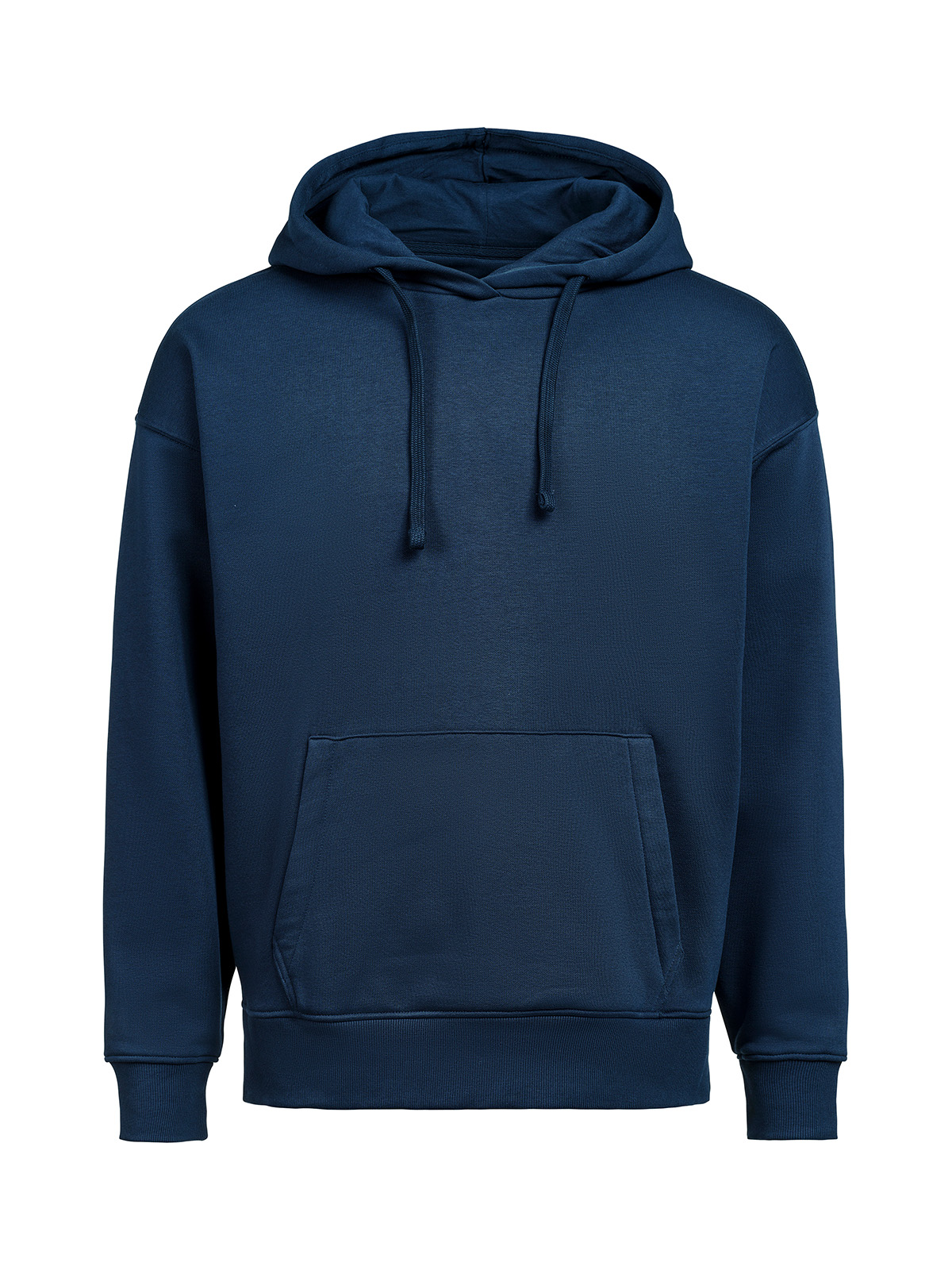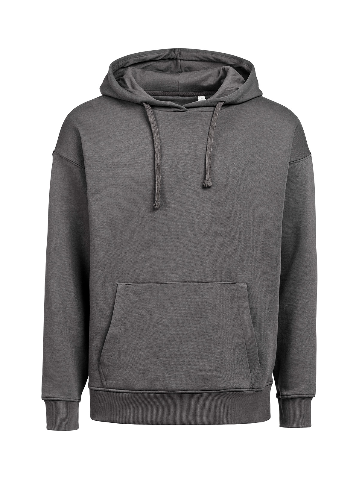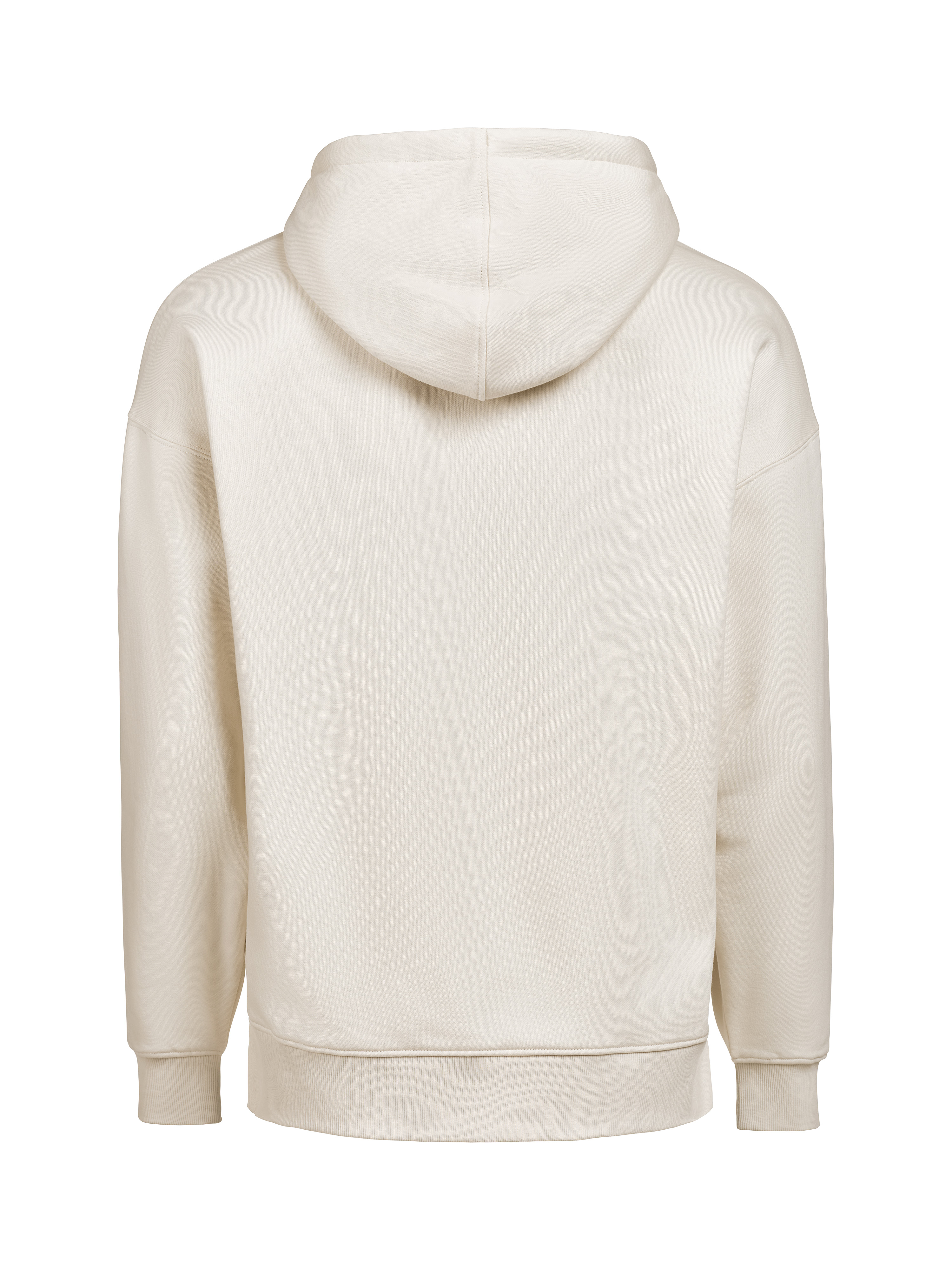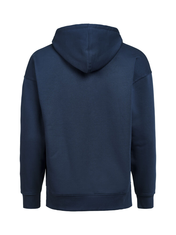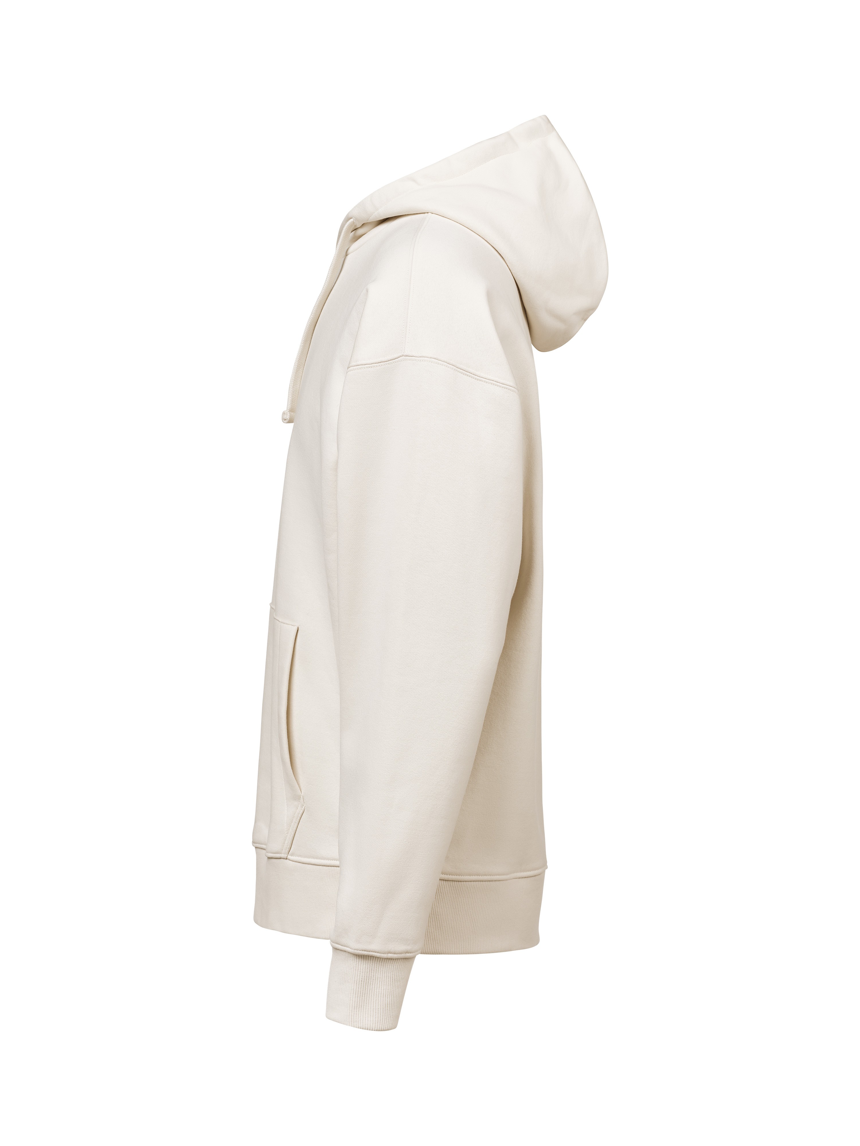 Tato univerzální mikina s kapucí má moderní, volnější střih a je vyrobena ze směsi 80 % organické bavlny a 20 % recyklovaného polyesteru. Materiál o gramáži 350 g/m² je příjemný na dotek a zajišťuje dlouhotrvající pohodlí, které je ještě umocněno enzymovým praním pro hladký, lehce „nošený“ efekt. Mikina je vybavena nastavitelnou kapucí se stahovací šňůrkou a žebrovanými lemy 2x1 na manžetách i spodním okraji.