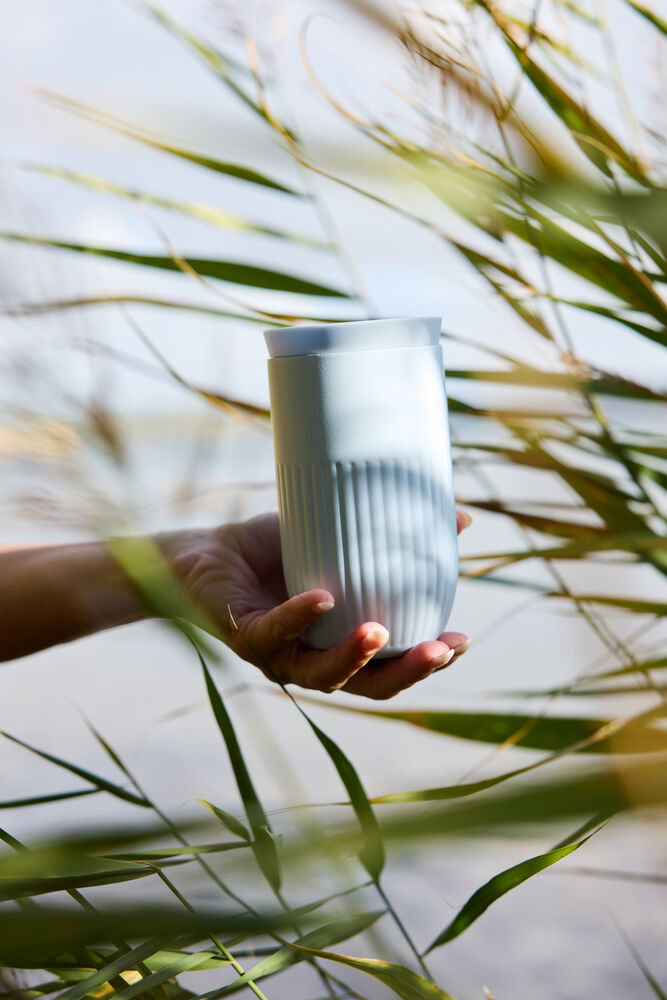 Cestovní hrnek TOVA s dvoustěnnou vakuovou izolací. Dvojitá stěna s vakuovou izolací obsahuje tenkou měděnou vrstvu, která zajišťuje ještě lepší udržení teploty nápoje. Keramický vnitřek a možnost pít z hrnku po celém obvodu (360°) posouvají zážitek z pití na novou úroveň.